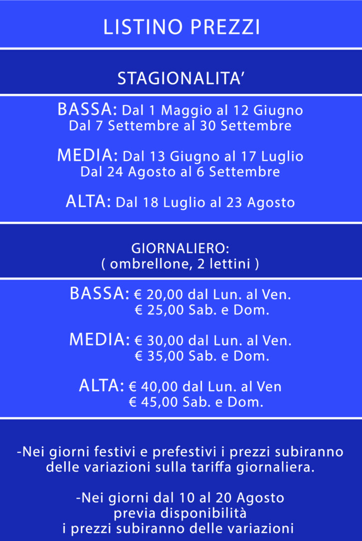 Tariffe Lido Li Marangi Stabilimento balneare - Lido Li Marangi Stabilimento balneare San Foca Melendugno